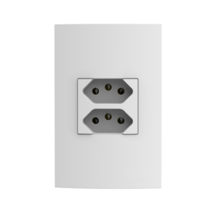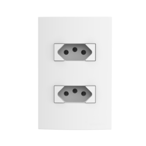 Conjunto Tomada 2P+T Duplex IRIEL. Segurança: atende o novo padrão brasileiro que evita choques e inserções parciais. Atende as diretivas ROHs. Design inovador, fácil de instalar e limpar, com superfície em extra brilho. Agilidade na obra, com instalação