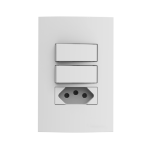 Conjunto 2 Interruptores Simples + Tomada 2P+T. Segurança: atende o novo padrão brasileiro que evita choques e inserções parciais. Atende as diretivas ROHs. Design inovador, fácil de instalar e limpar, com superfície em extra brilho. Disponível na cor br