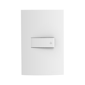 Conjunto Pulsador Símbolo Campainha IRIEL. Design inovador, fácil de instalar e limpar, com superfície em extra brilho e toque suave. Disponível na cor branco. Corrente de 10A e tensão 250V. Produzido em material termorplástico de alta performance, com ad