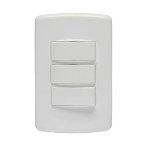Conjunto 3 Interruptores Simples. Design inovador, fácil de instalar e limpar, com superfície em extra brilho e toque suave. Disponível na cor branco. Corrente de 10A e tensão 250V. Produzido em material termorplástico de alta performance, com aditivo ant