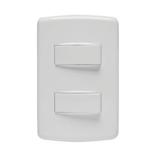 Conjunto 2 Interruptores Paralelos IRIEL. Design inovador, fácil de instalar e limpar, com superfície em extra brilho e toque suave. Disponível na cor branco. Corrente de 10A e tensão 250V. Produzido em material termorplástico de alta performance, com adi