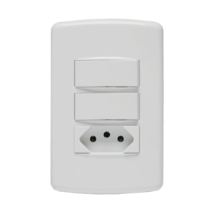 Conjunto 2 Interruptores Simples + Tomada 2P+T. Segurança: atende o novo padrão brasileiro que evita choques e inserções parciais. Atende as diretivas ROHs. Design inovador, fácil de instalar e limpar, com superfície em extra brilho. Disponível na cor br