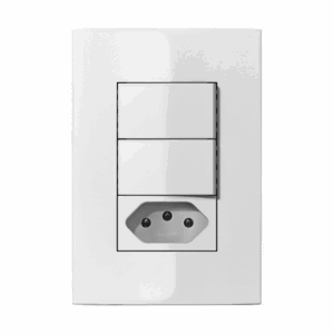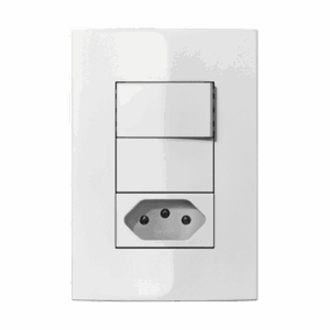Conjunto 2 Interruptores Simples + 1 Tomada 2P+T. Segurança: atende o novo padrão brasileiro que evita choques e inserções parciais. Atende as diretivas ROHs. Requinte e estilo! Disponível na cor branco. Corrente de 10A e tensão 250V. Produzido em materia