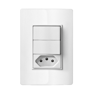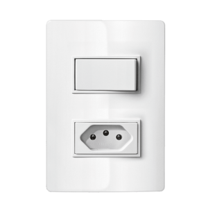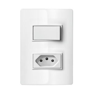 Conjunto Interruptor Simples + Tomada 2P+T. Segurança: atende o novo padrão brasileiro que evita choques e inserções parciais. Atende as diretivas ROHs. Design único, fácil de instalar e limpar e toque suave. Com sistema progressivo de travas e bornes pro