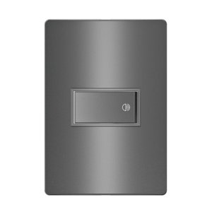 Pulsador Reversível IRIEL. Design único, fácil de instalar e limpar e toque suave. Com sistema progressivo de travas e bornes protegidos. Disponível na cor concreto. Corrente de 10A e tensão 250V. Produzido em material termorplástico de alta performance,