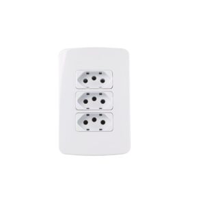 Conjunto 3 Tomadas 2P+T 10A c/placa branco Linha B3