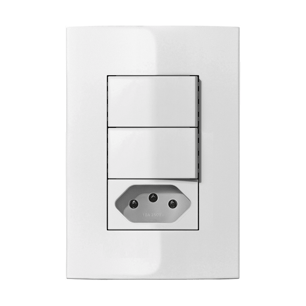 256001 Conjunto 2 Interruptor Simples 10Ax + 1 Tomada 2P+T 10A 250V~ 4X2 Branco Iris Iriel