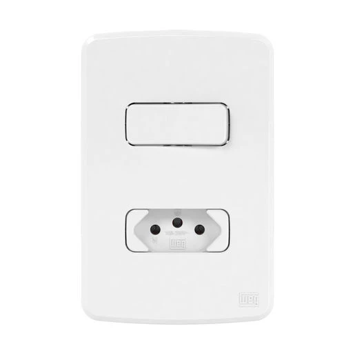 Conjunto 1 Interruptor Simples + 1 Tomada 2P+T 10A 250V C Placa + Suporte Branco Composé Weg #13272553