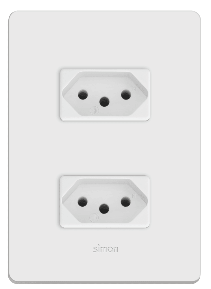 CONJUNTO 2 TOMADAS 2P+T PADRÃO BRASILEIRO 10A 250V – BRANCO – SIMON 20