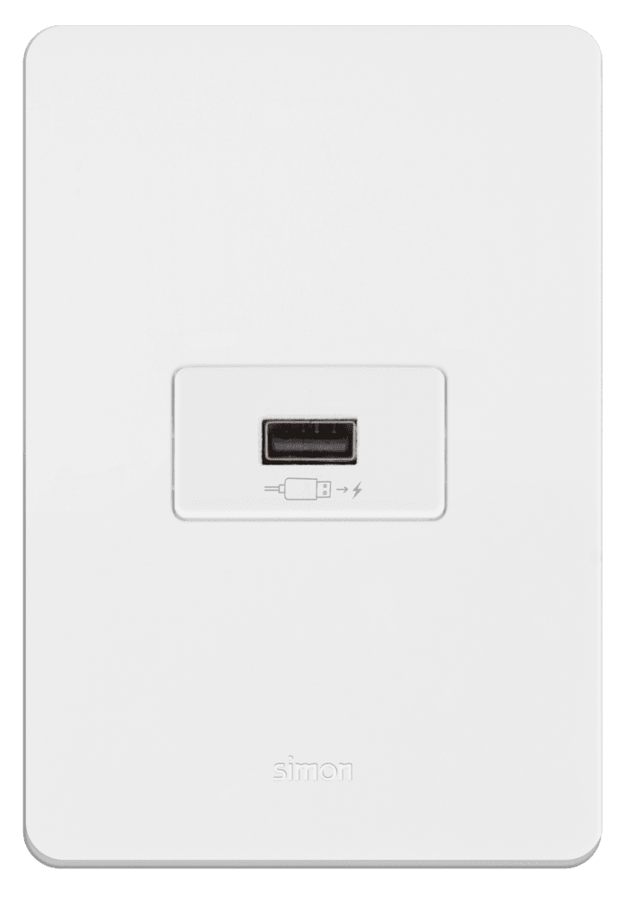CONJUNTO CARREGADOR USB 2.1A TURBO CHARGE BIVOLT BRANCO C/PLACA+SUPORTE – SIMON 20