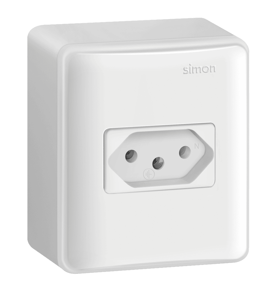 CONJUNTO DE SOBREPOR 1 TOMADA 2P+T PADRÃO BRASILEIRO 10A 250V – BRANCO – SIMON 19