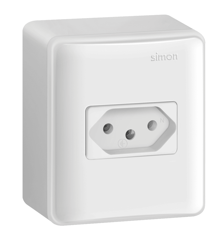 CONJUNTO DE SOBREPOR 1 TOMADA 2P+T PADRÃO BRASILEIRO 20A 250V – BRANCO – SIMON 19