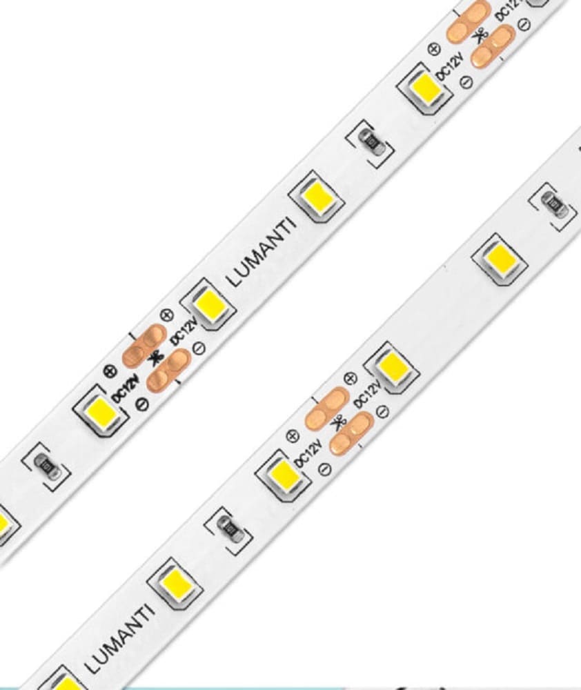 Escolha a Fita LED 4000K 12V 60 LEDs SMD2835 5W/m 500 Lumens/m IP20 IRC70 Lumanti pela sua eficiência energética, luz branca neutra ideal para diversos ambientes e durabilidade de 20.000 horas, garantindo qualidade e economia em projetos de fita LED 4000K Lumanti.