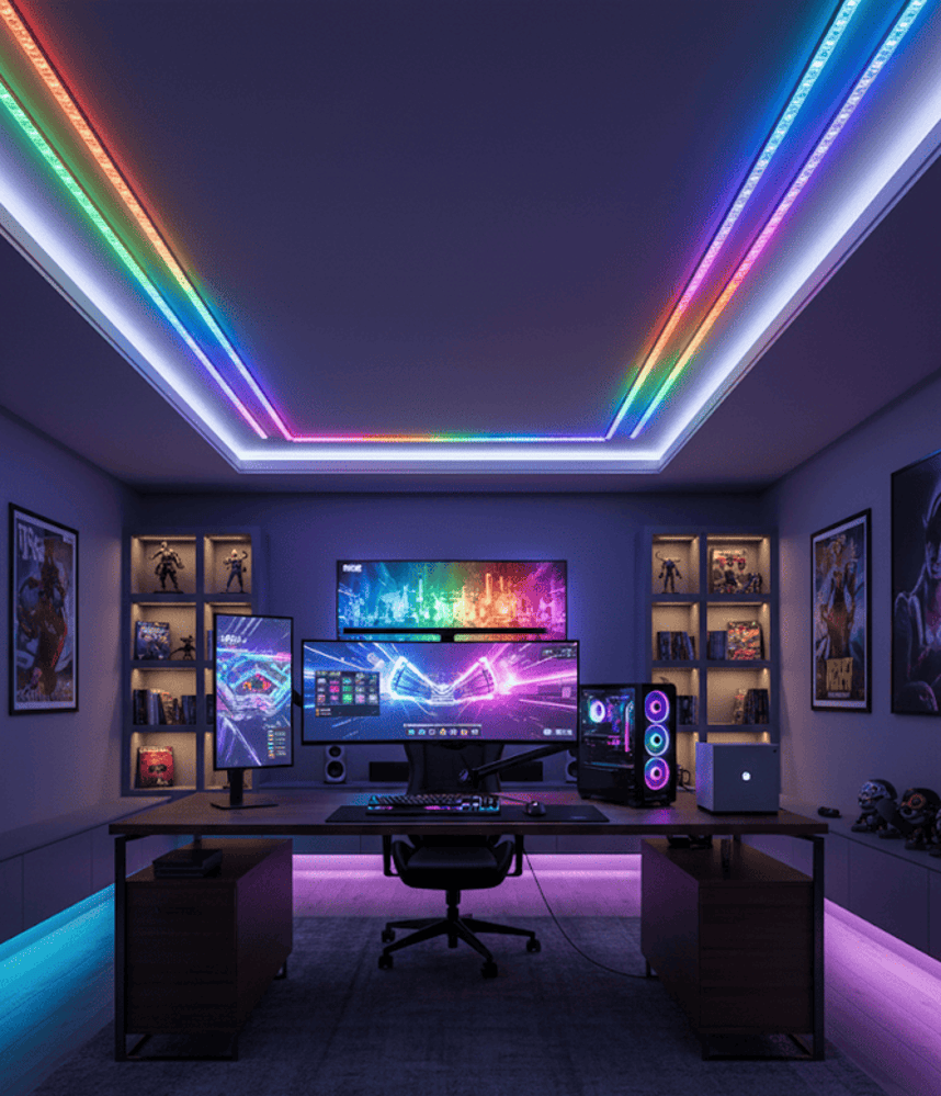 - Iluminação residencial: Decoração de salas, cozinhas e quartos com cores RGB personalizáveis.