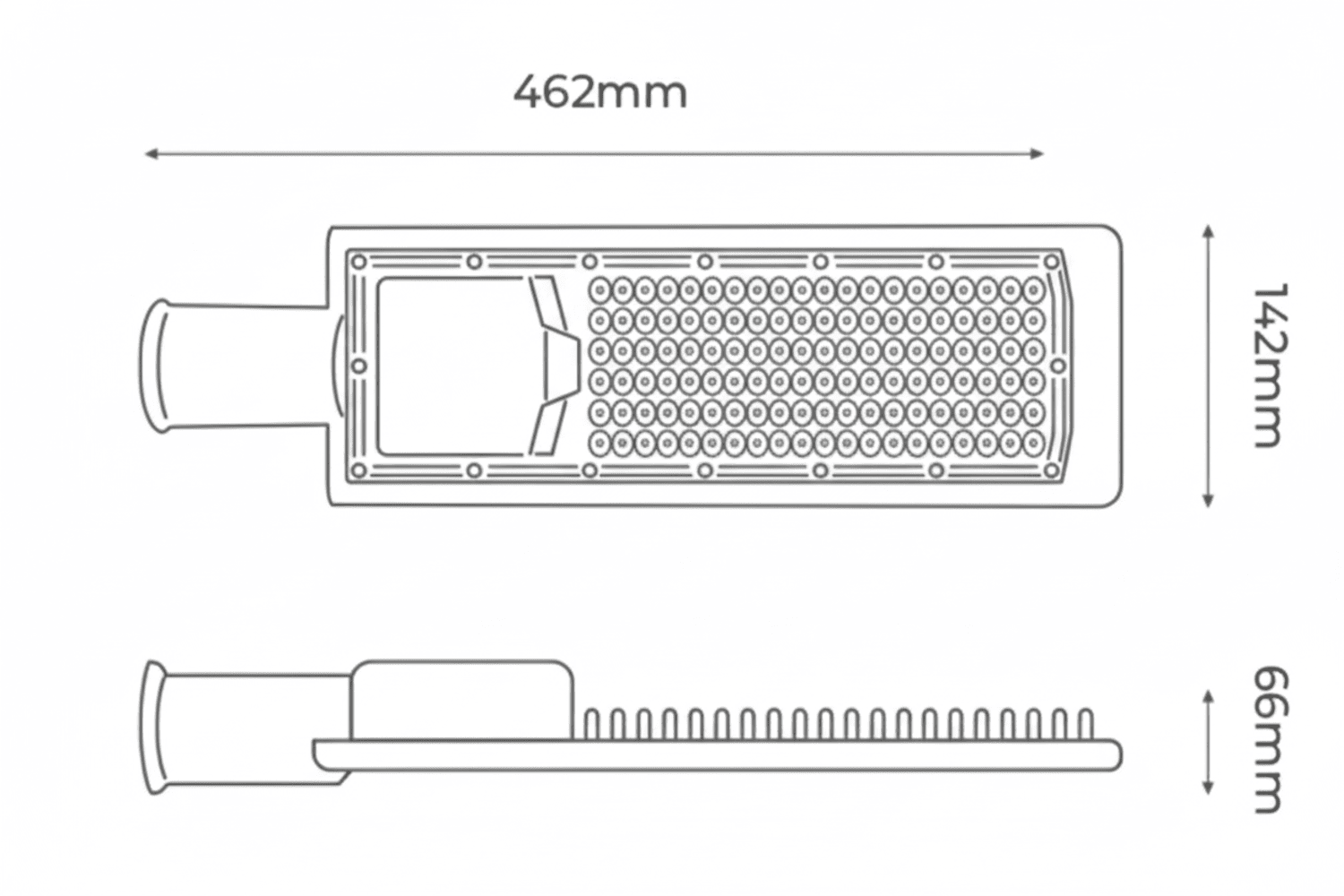 Iluminação eficiente com 12000 lúmens para ambientes urbanos.