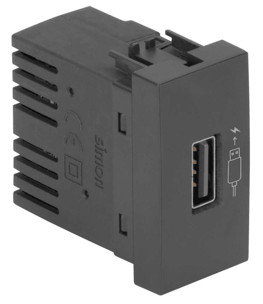 MÓDULO CARREGADOR USB 2.1A TURBO CHARGE BIVOLT – LINHA S30/S35 – GRAFITE – SIMON 30/35
